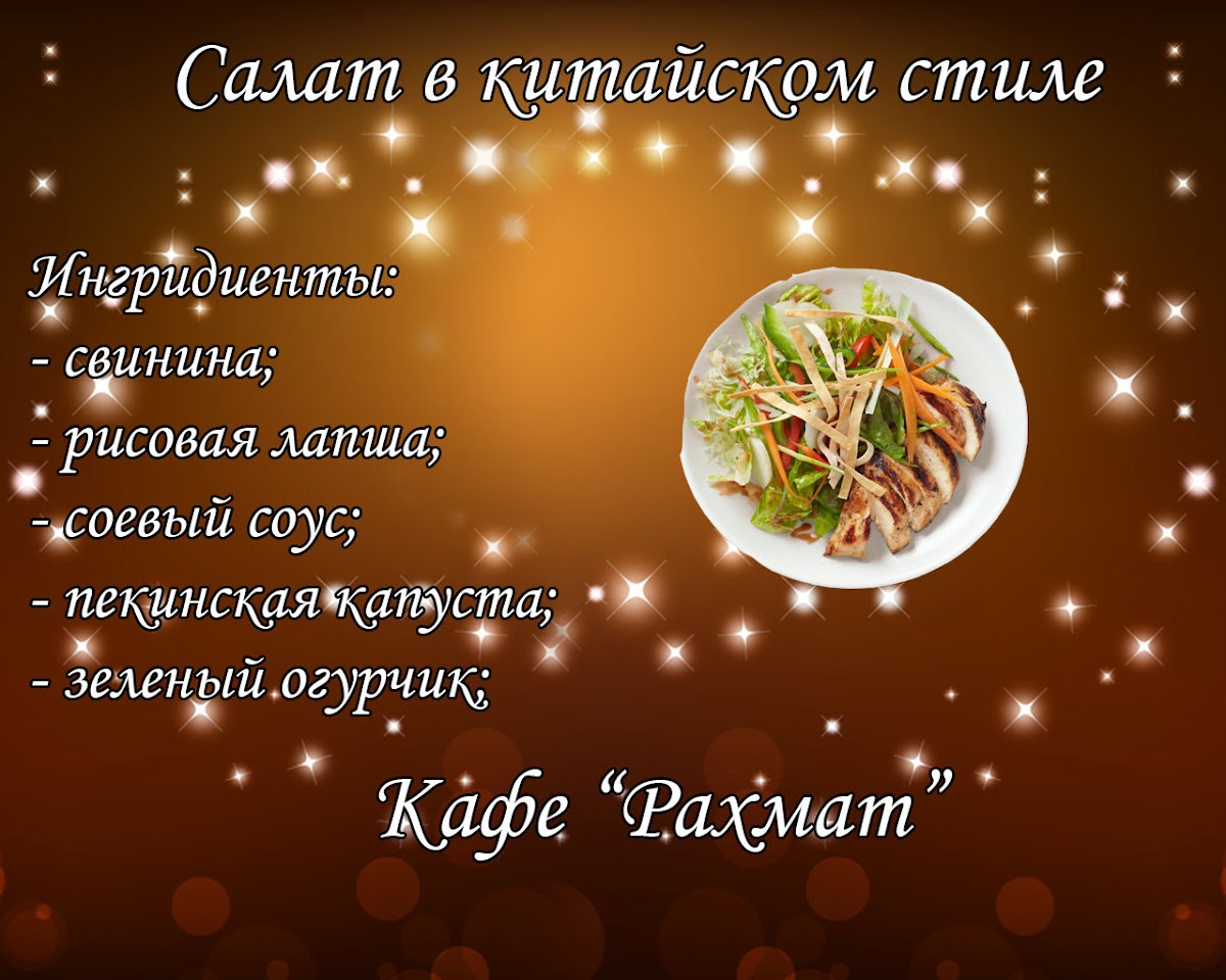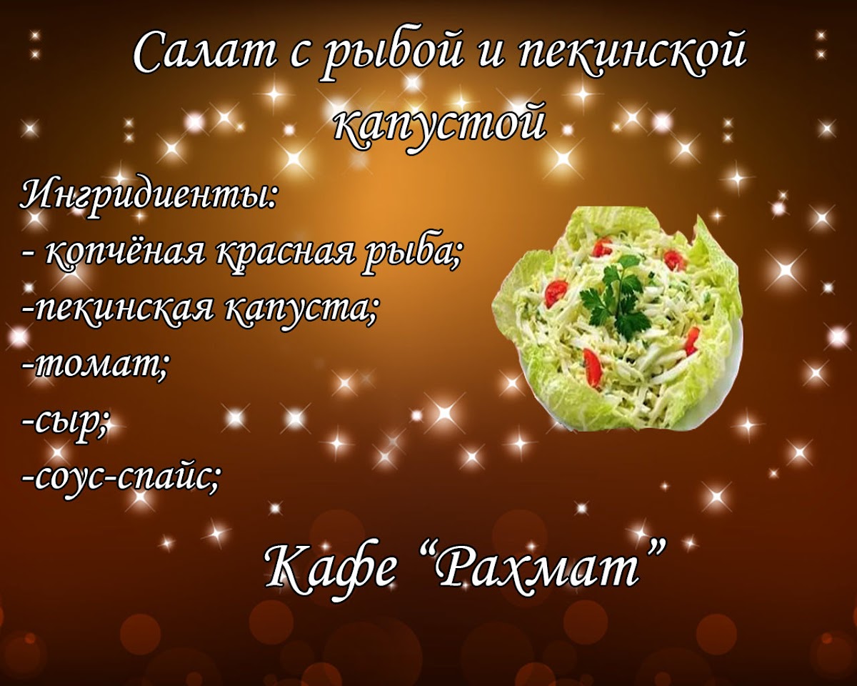 Welcome to Rakhmat, a delightful destination in Kulunda, Altai Krai, where Eastern charm meets culinary variety. Located on ул. Кирова, 71, this inviting café resonates with the warm aesthetics of Eastern design, creating a cozy atmosphere for diners. Notably, Rakhmat offers a diverse menu that features dishes ranging from hearty dumplings (манты) to familiar favorites like spaghetti and grilled meats, catering to a variety of palates.